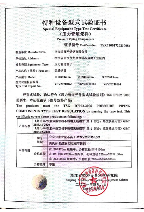 浙江銀隆不銹鋼有限公司創始于2006年,是一家專業生產不銹鋼無縫管的企業。公司位于浙江麗水市,企業注冊總資金貳億壹仟柒佰肆拾玖萬元,擁有4家工廠,占地總面積11萬平方米,職工530人,年產不銹鋼無縫管5萬噸。